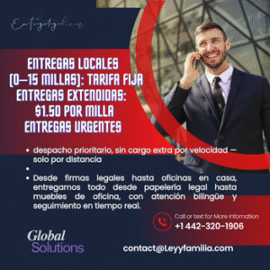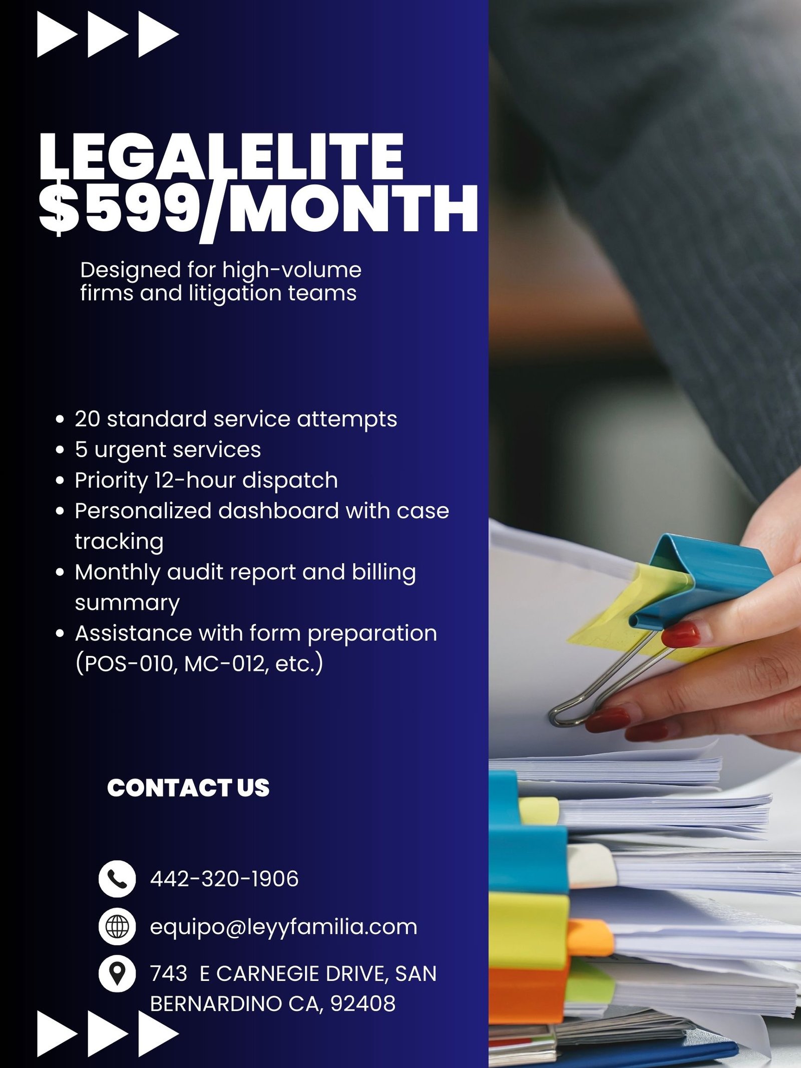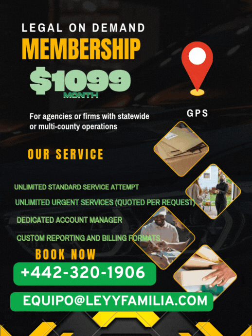 Entrega rápida, confiable y bilingüe de documentos legales en California, a nivel nacional e internacional. Servimos papeles legales con precisión — incluyendo servicios urgentes, el mismo día, stakeout y presentación en corte. Confiado por firmas legales y clientes que exigen profesionalismo y prueba.